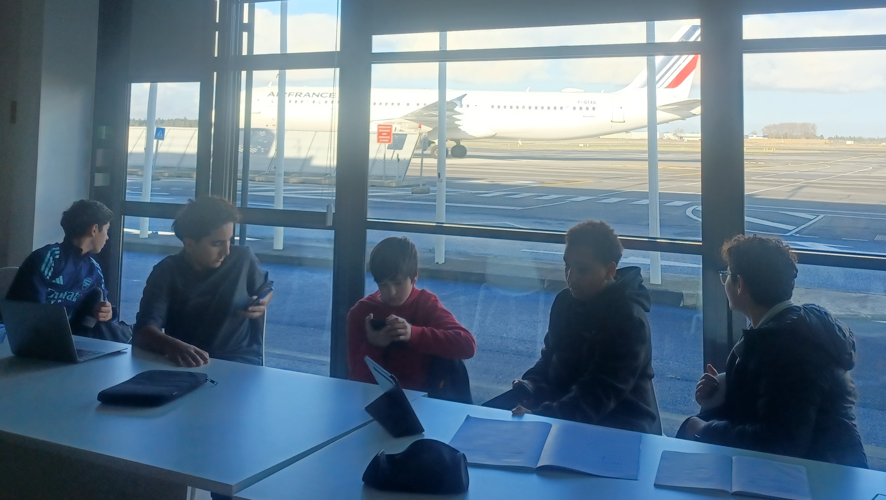 Nous avons aussi profité du trafic aérien, très dense ce jour-là, pour mettre en application les cours sur les propulseurs à réaction.