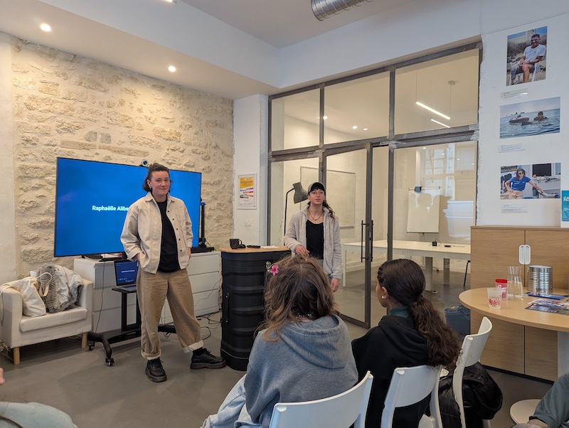 Raphaëlle Alibert et Lara Tchimdjioglou ont présenté la formation de skippeuse à l’école de voile des Glénans à Marseillan. Elles ont partagé leur parcours et leur expérience dans un monde encore essentiellement masculin mais qui tend à se féminiser. Sur une promotion de 20 élèves en 2025-2026 l’école compte 15 filles.