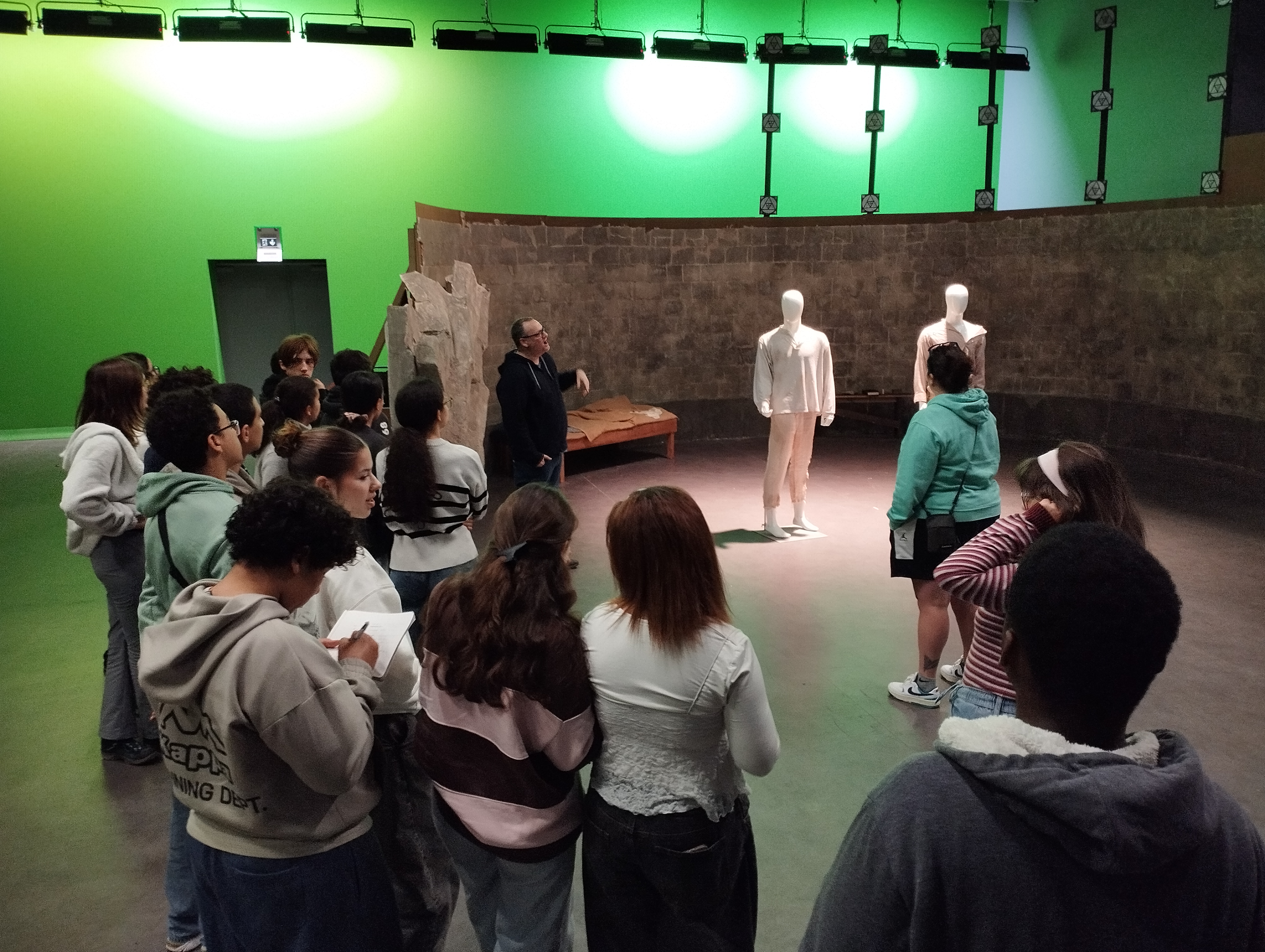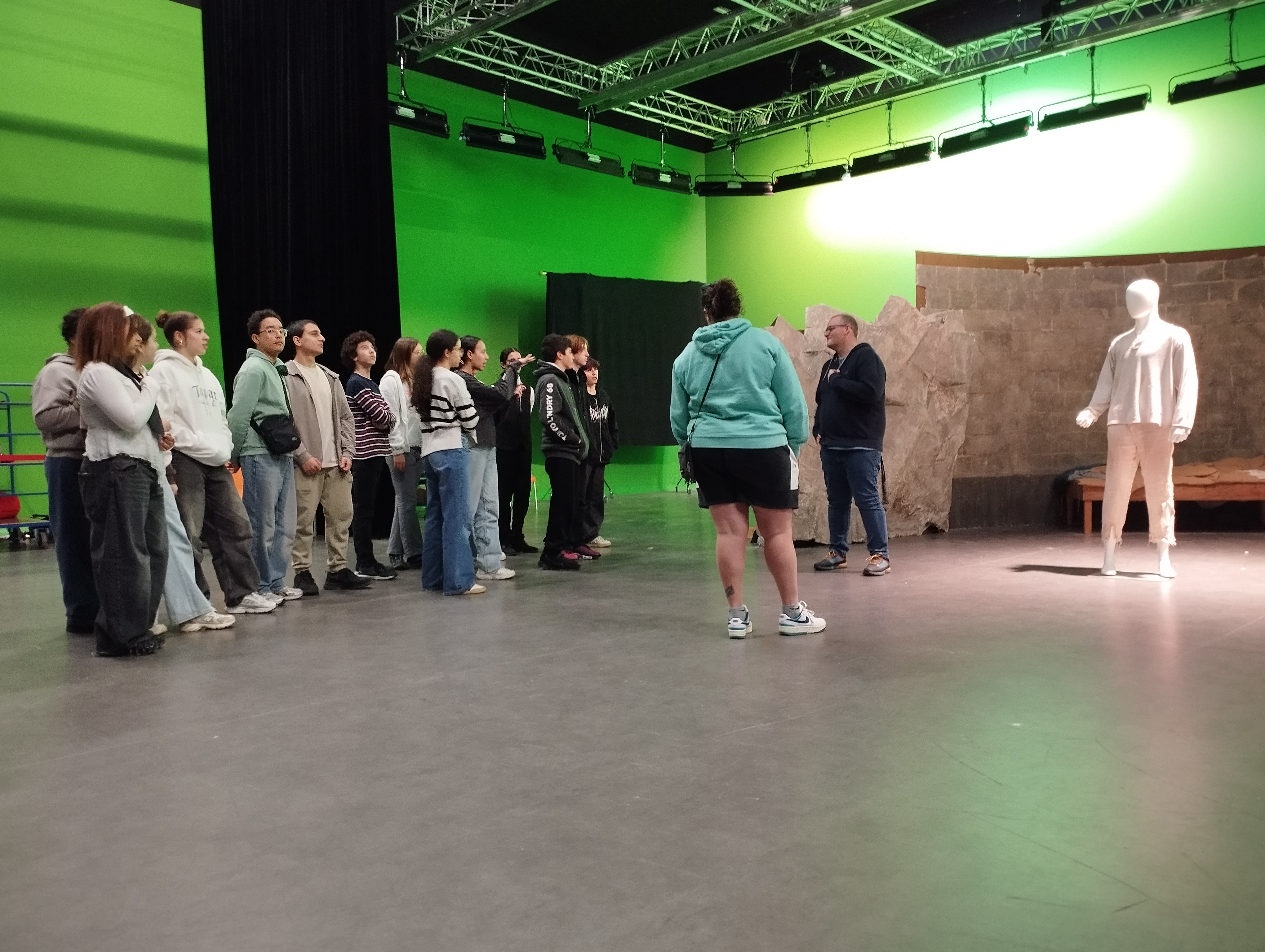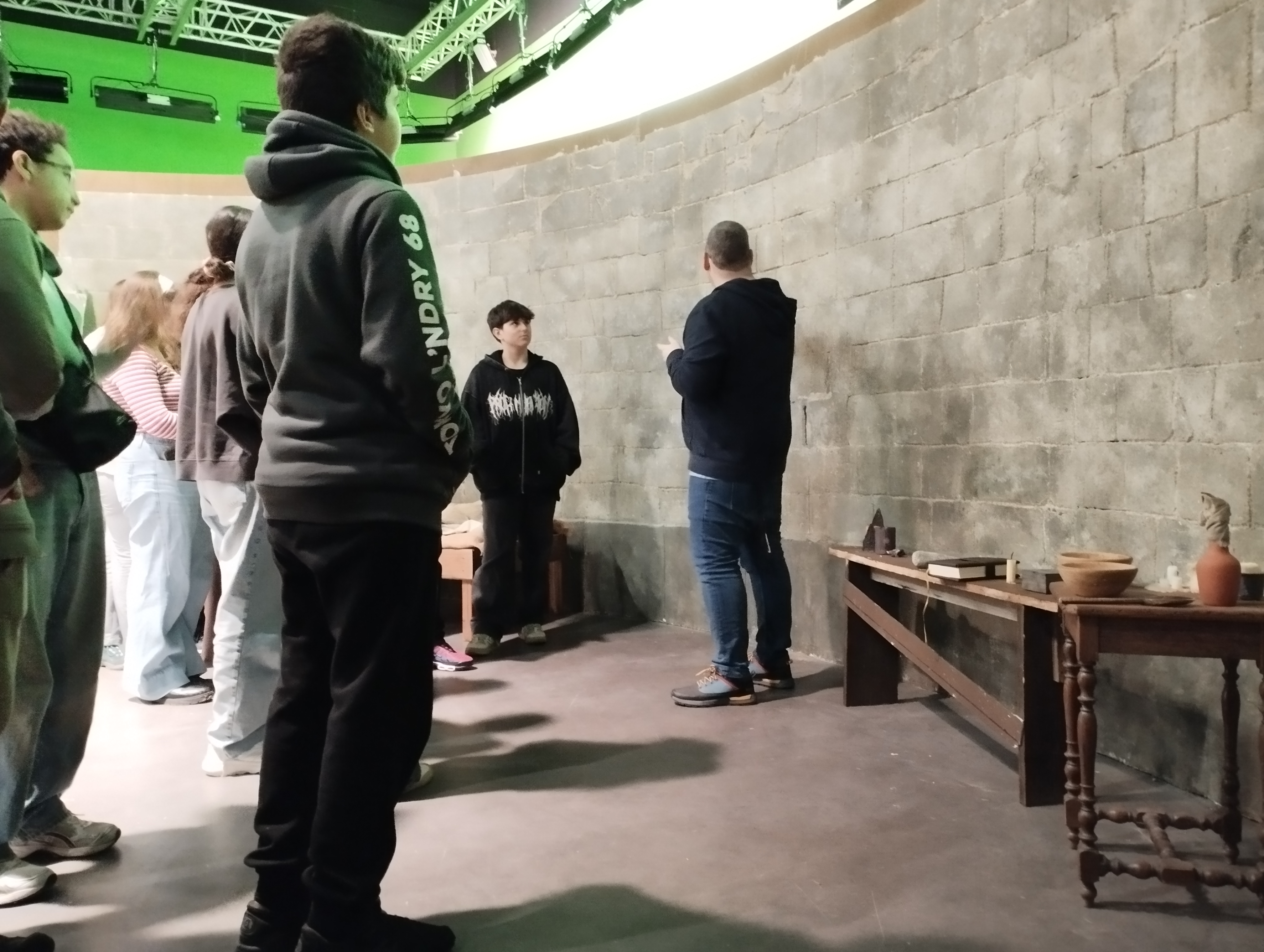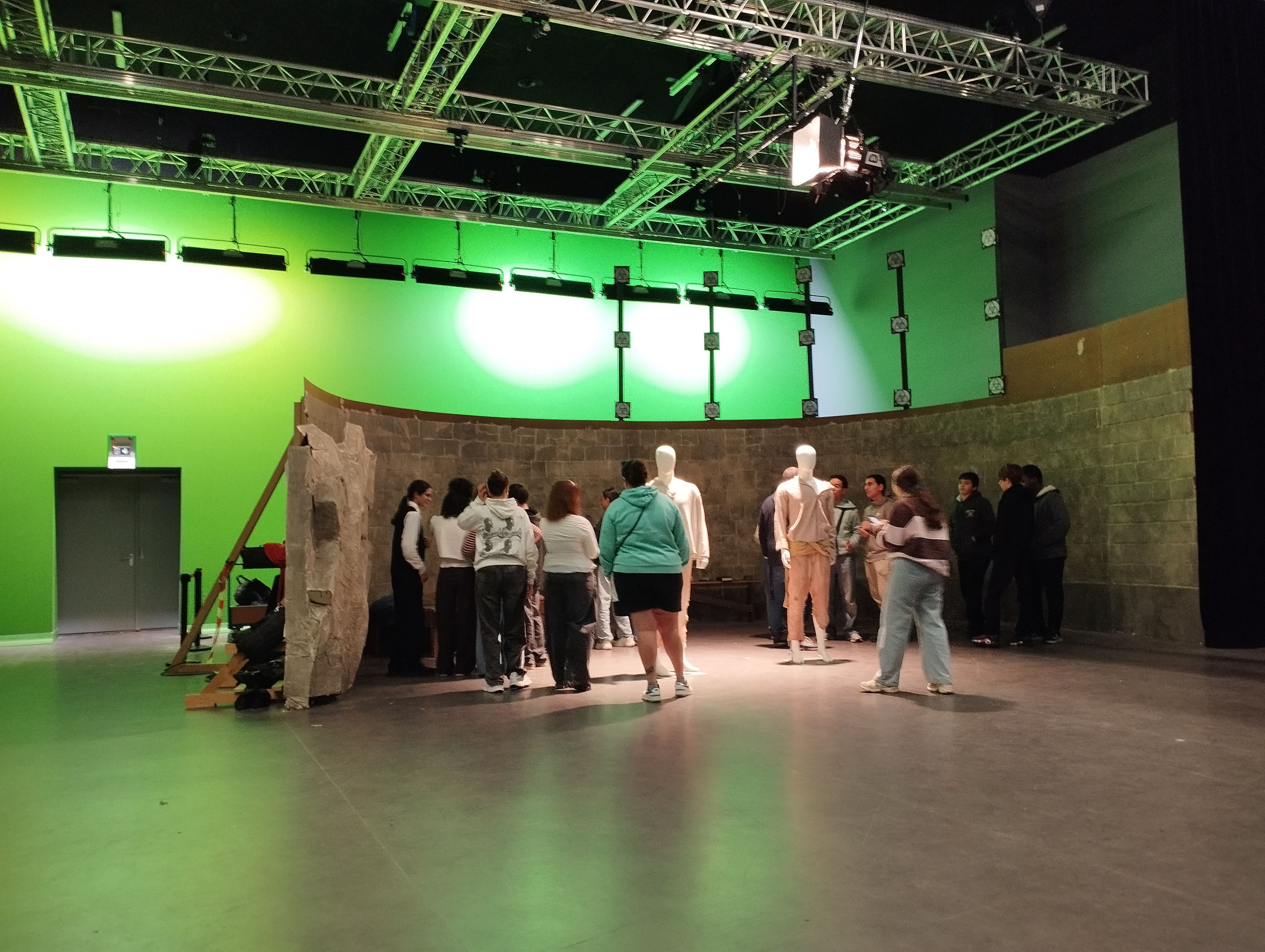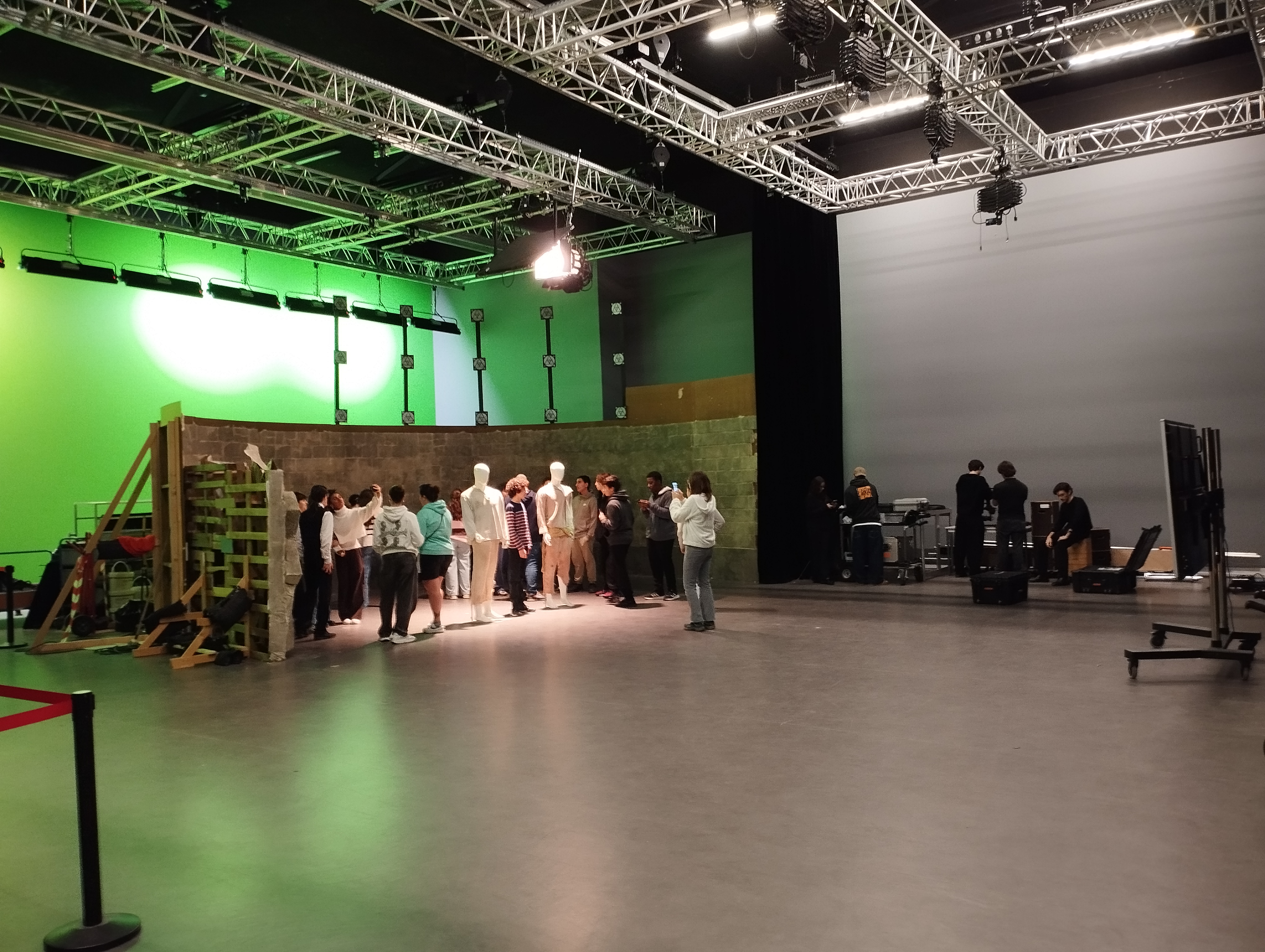 Nos élèves ont été reçus par un enseignant de cette école, il leur a présenté les différentes formations proposées et il leur a expliqué à quoi pouvaient ressembler des cours dans une école de cinéma. Ensuite, les élèves ont pu se rendre sur le plateau de tournage de l'école et y voir le décor fabriqué par des étudiants pour un exercice et ainsi comprendre rapidement comment créer l'image d'une prison de pierre avec très peu de choses. Après ce passage sur le plateau, nous nous sommes rendus dans une petite salle de projection pour regarder des films réalisés par des étudiants dans le décor que nous venions de découvrir. Au terme de cette brève projection, nos élèves ont pu discuter avec un étudiant de deuxième année qui avait réalisé un des films projetés et lui poser des questions sur son travail.