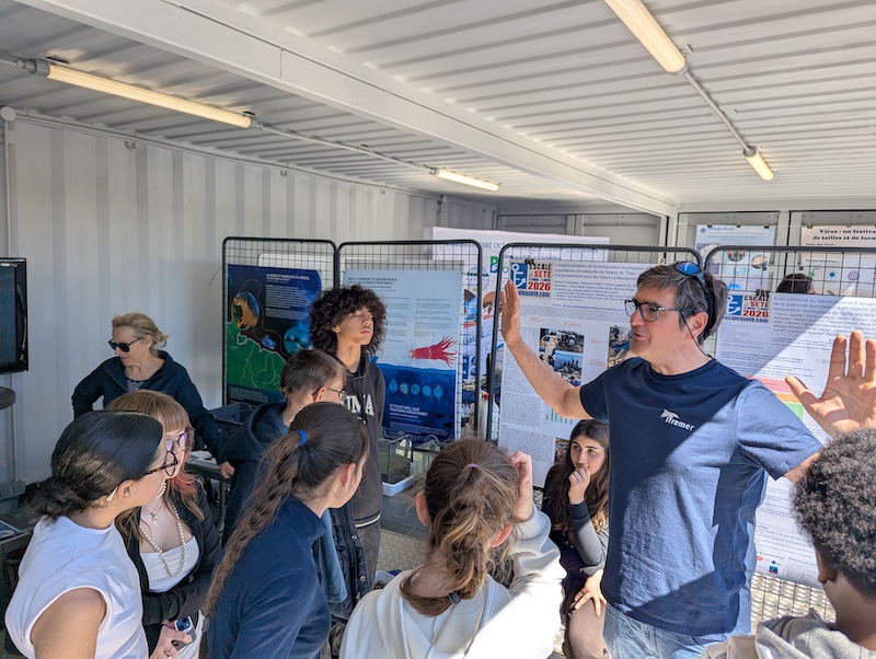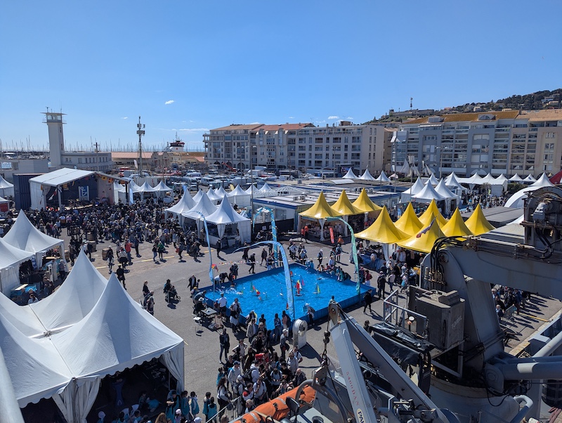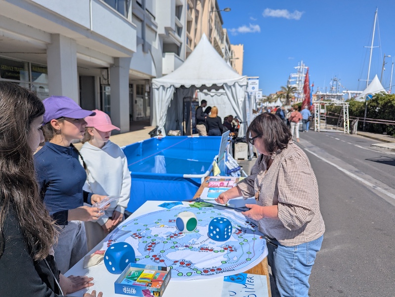 Lors de la pause déjeuner, les élèves du BImer ont tenu à tour de rôle un stand présentant le jeux BImer développé dans le cadre de cet atelier. Le contact avec les festivaliers a été très enrichissants notamment avec d’anciens élèves du collège aujourd’hui retraités. Les élèves non présents sur le stand ont bénéficié à tour de rôle d’un quartier libre pour découvrir le village d’escale à Sète avec ses attractions, concert de rue, jeux….