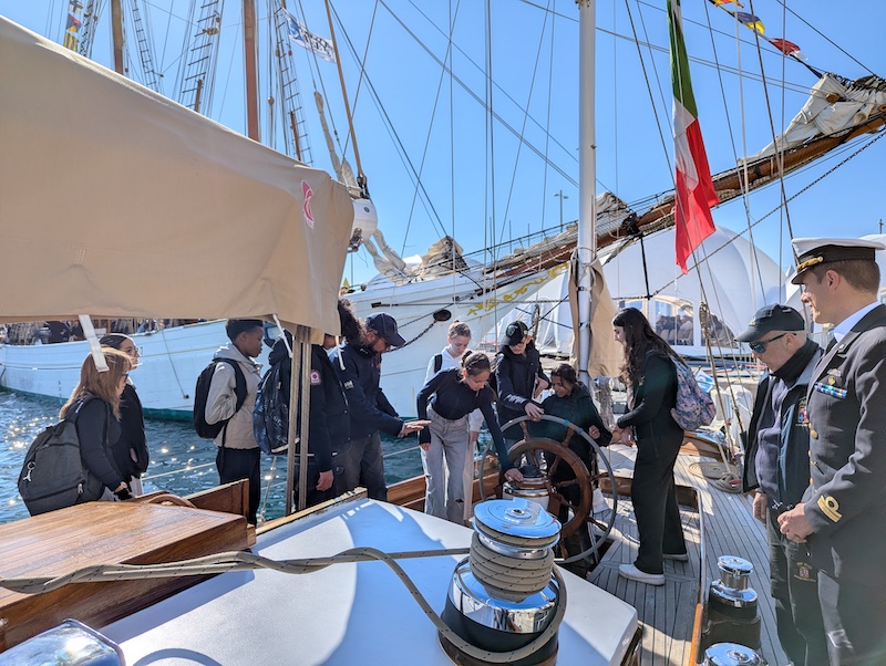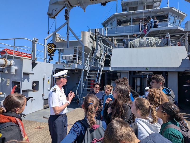 Les élèves de l’atelier BImer ont pu visiter des navires écoles comme la goélette (deux mâts) Etoile de la marine nationale française (28 marins), la goélette Corseca 2 de la marine nationale italienne (20 marins) ou encore le trois mâts Sudarshini premier navire école de la marine nationale indienne (48 marins). Nous avons eu le privilège de visiter le remorqueur le Loire (7500 chevaux, capable de remorquer le porte avion Charles De Gaulle, 14 nœuds de vitesse maximum, 22 marins, grue de 22 tonnes, pompe incendie de 1200 mètres cubes par seconde).