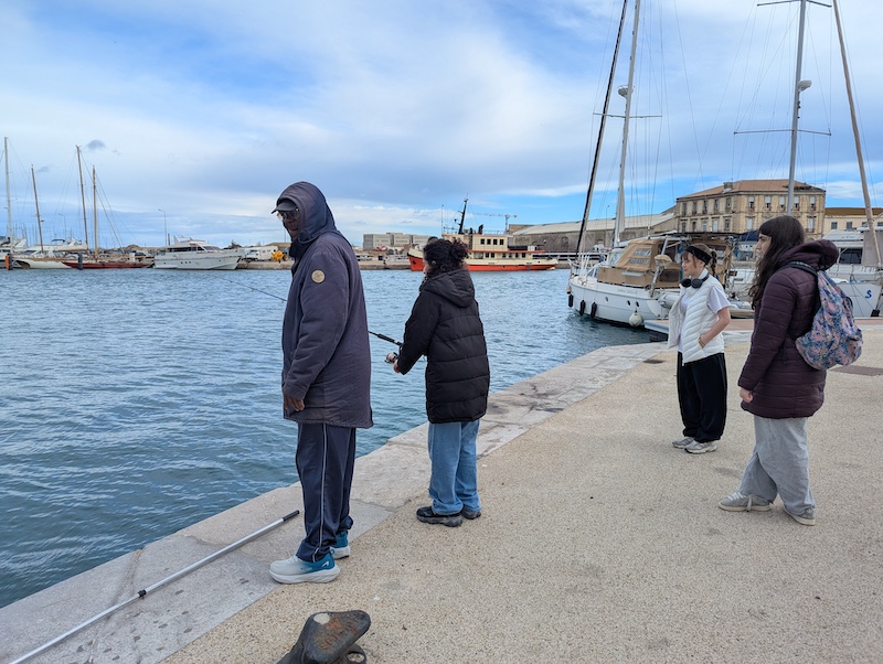 Après cette visite les élèves ont eu le plaisir de partager un pique-nique sur la corniche de Sète et de faire une balade digestive sur les quais de Sète à la découverte des navires à quais. Ce fut l’occasion de belles rencontres notamment celle avec un pêcheur amateur.